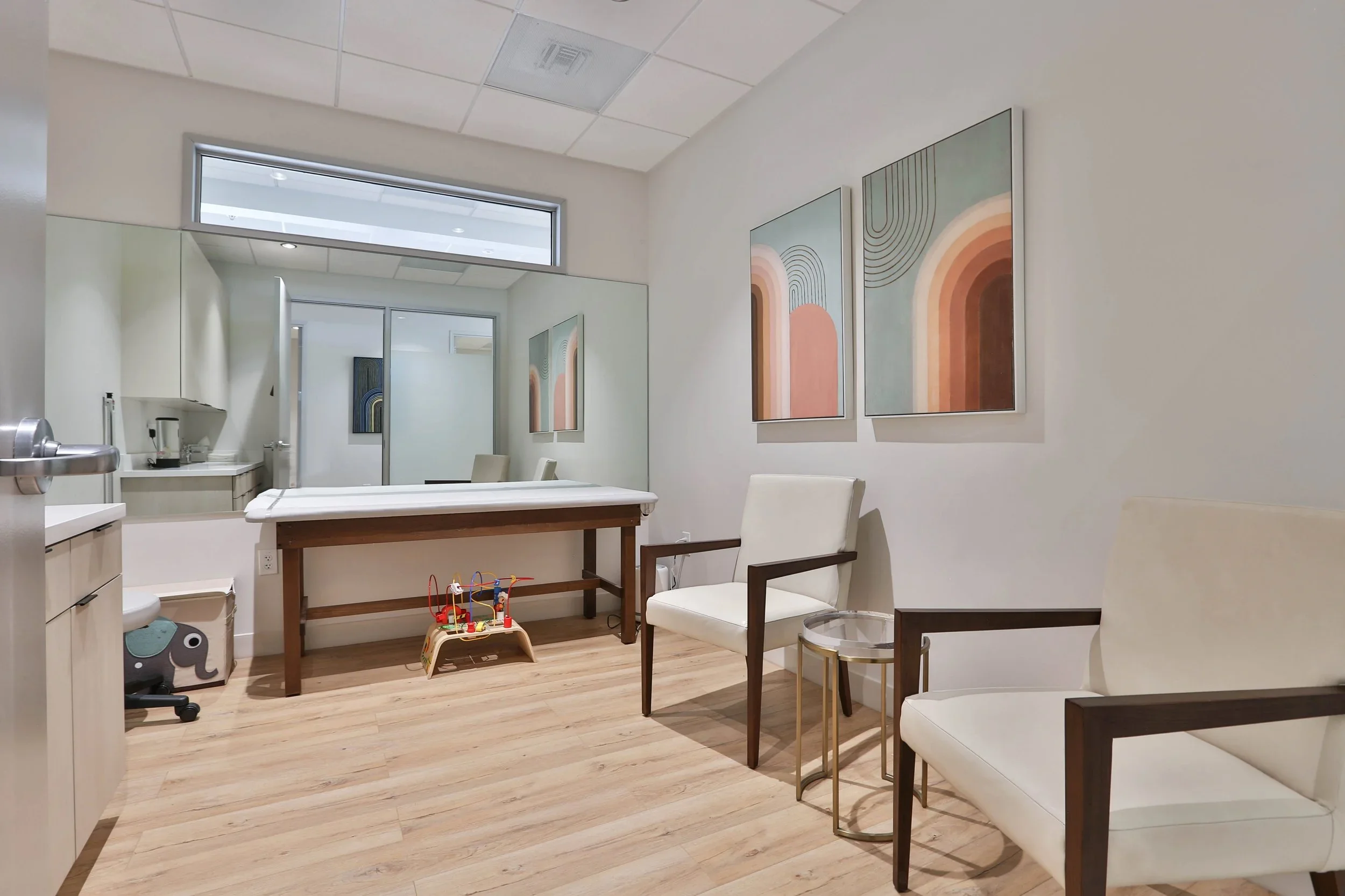 This concierge medical practice was designed to deliver a spa-like experience within a professional healthcare setting. The project began with a single suite and evolved through multiple phases of expansion, ultimately encompassing a range of specialties including pediatrics and ophthalmology. Each phase built upon the original vision—balancing a calm, welcoming atmosphere with the technical precision required for medical environments.
